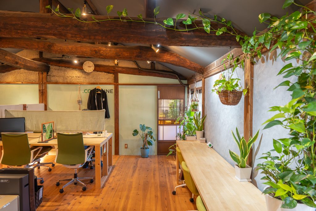 関空の玄関口泉佐野駅からすぐの立地。古民家ならではの、ほっとする居心地の中で集中してお仕事や勉強ができるほか、Wi-Fi完備・フリードリンク付きなので、カフェのようなご利用もいただけます。